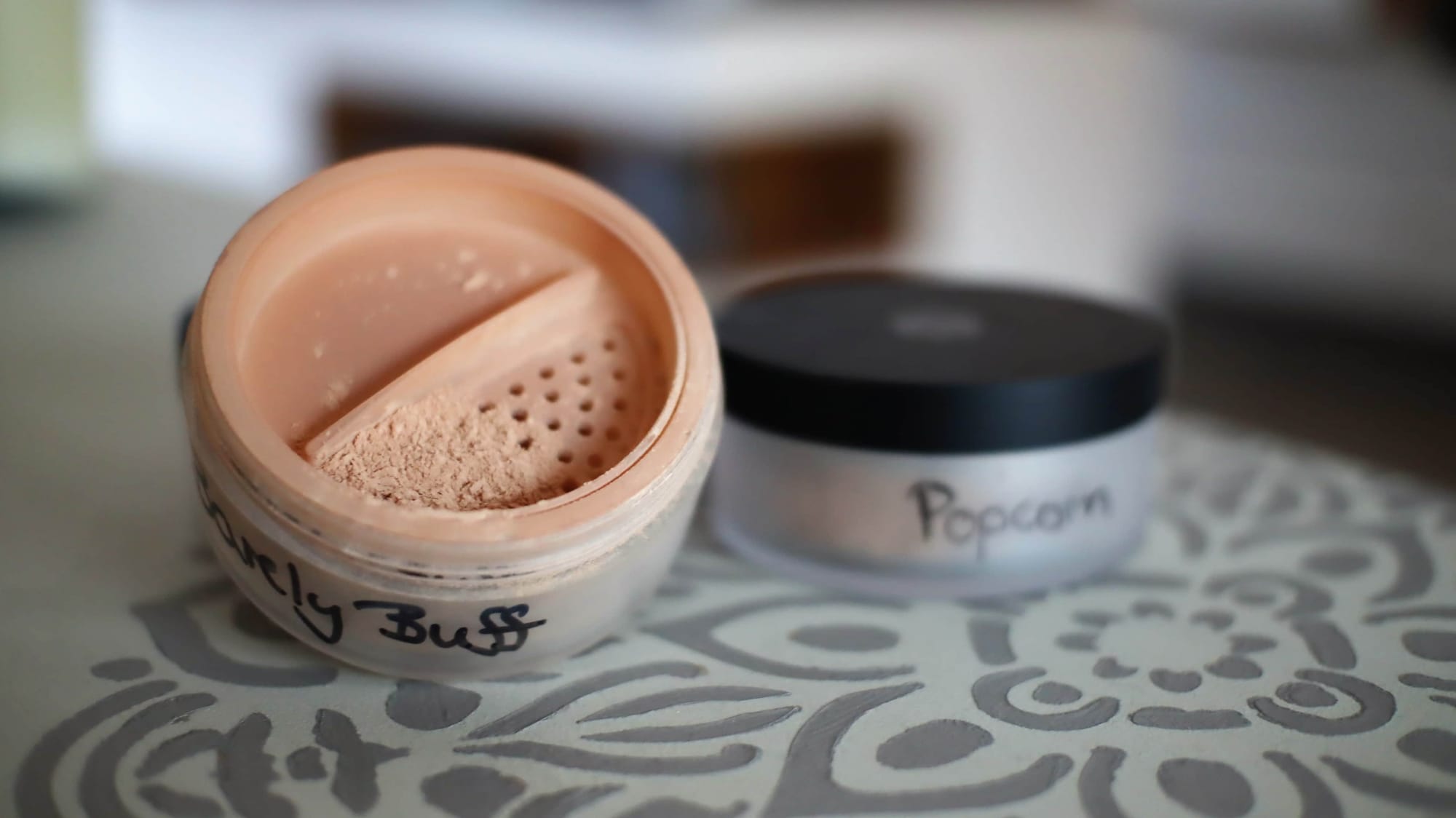 As makeup: Mineral Foundation by Lily Lolo — I use the colors “Popcorn” and “Barely Buff” for my fairer skin.